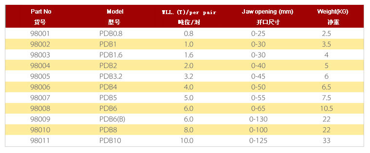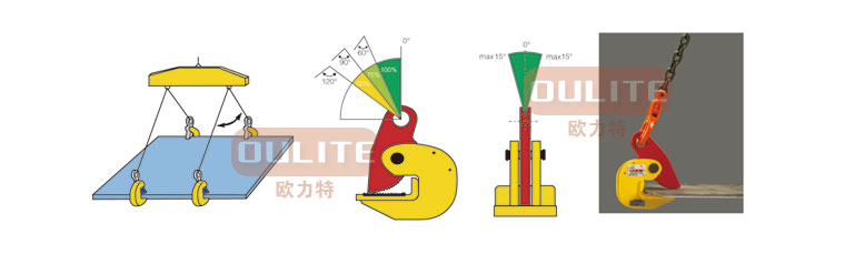 .額定載荷是指吊鉗成對使用、吊點夾具為60度時允許起吊的最大重量,吊裝作業(yè)中兩只或4只配套成組使用